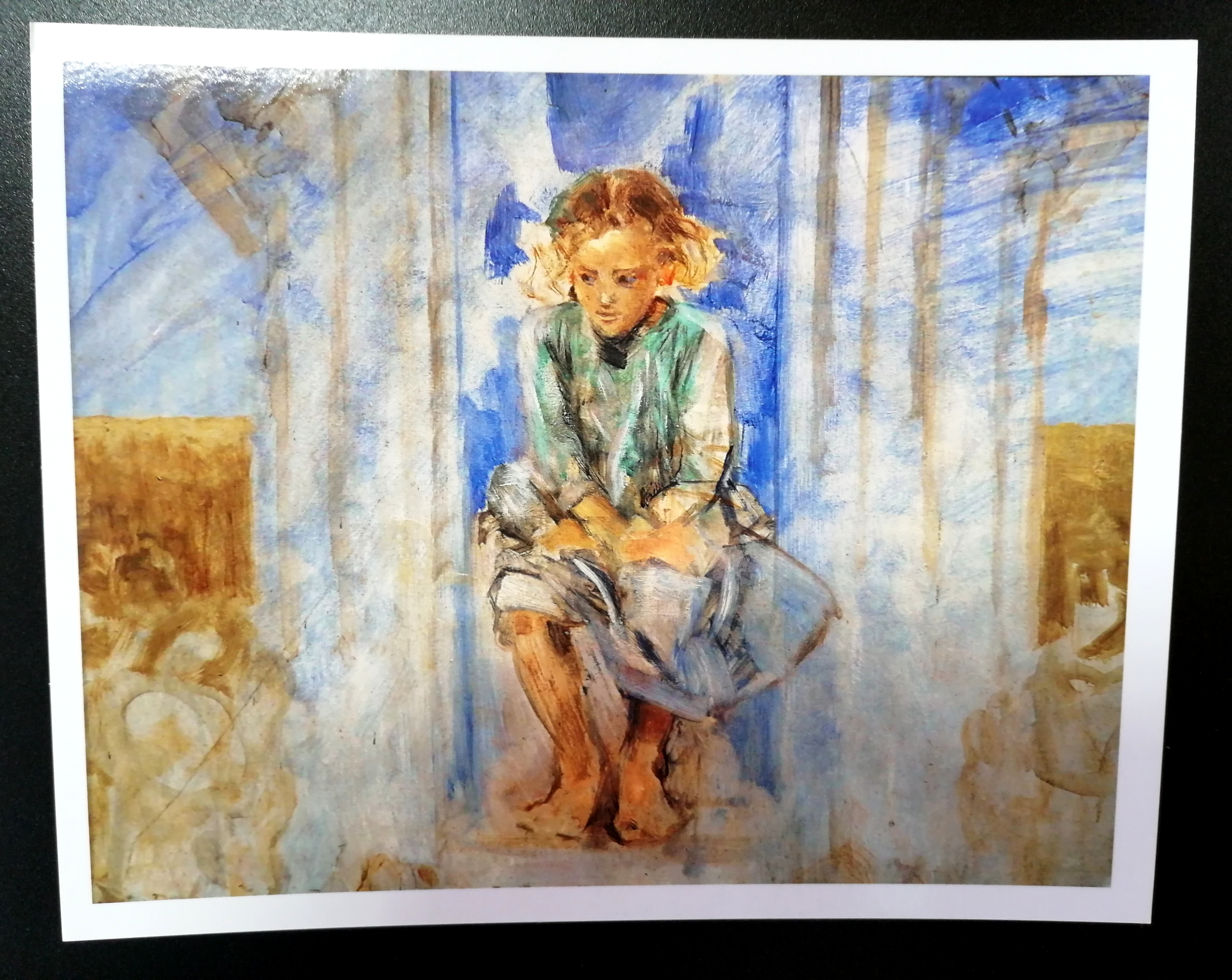 W sprzedaży dostępna jest elegancka karta (format 18,5 × 14,5 cm) z reprodukcją obrazu Jacka Malczewskiego "Siedząca dziewczynka" (1911) – jednego z cenniejszych dzieł w naszej kolekcji.