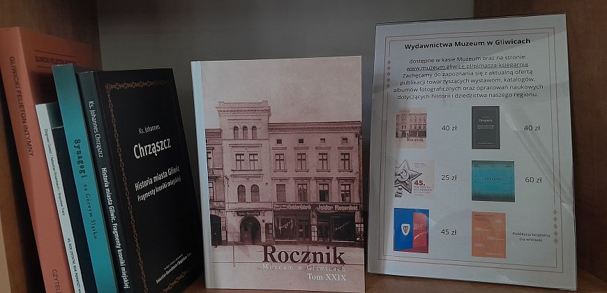 Aktualnie na „muzealnej półce” goszczą m.in. takie tytuły jak: „Synagogi na Górnym Śląsku” 9kolejne wydanie), najnowszy, XXIX już tom „Rocznika Muzeum w Gliwicach" czy „Historia miasta Gliwic. Fragmenty kroniki miejskiej”. Oczywiście nie zabrakło też wszystkich tomów serii „Gliwice znane i nieznane”.