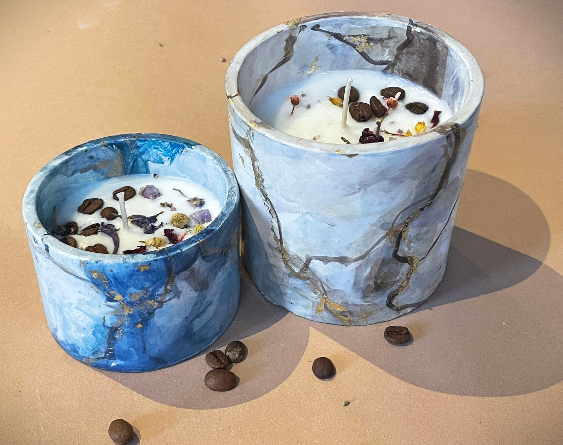 Na drugich zajęciach przystąpimy do wykonania świeczek, które wypełnią „marmurowe” formy stworzone podczas pierwszych zajęć. Na warsztatach uczestnicy poznają metodę tworzenia świeczek sojowych, następnie stworzą własną. Po odpowiednim przygotowaniu formy zostaną zalane woskiem sojowym, po czym nastąpi etap dekoracji świeczek. Do zdobienia użyjemy m.in. suszonych kwiatów, ziarenek kawy, drobnych kamyczków itp.
